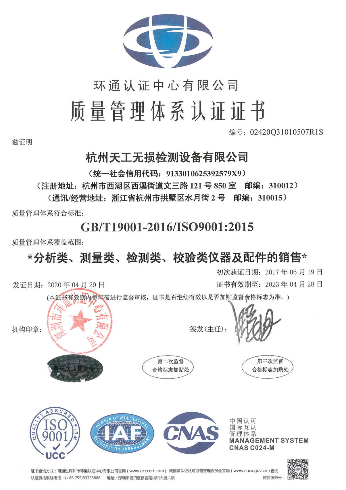 質量管理體系認證證書