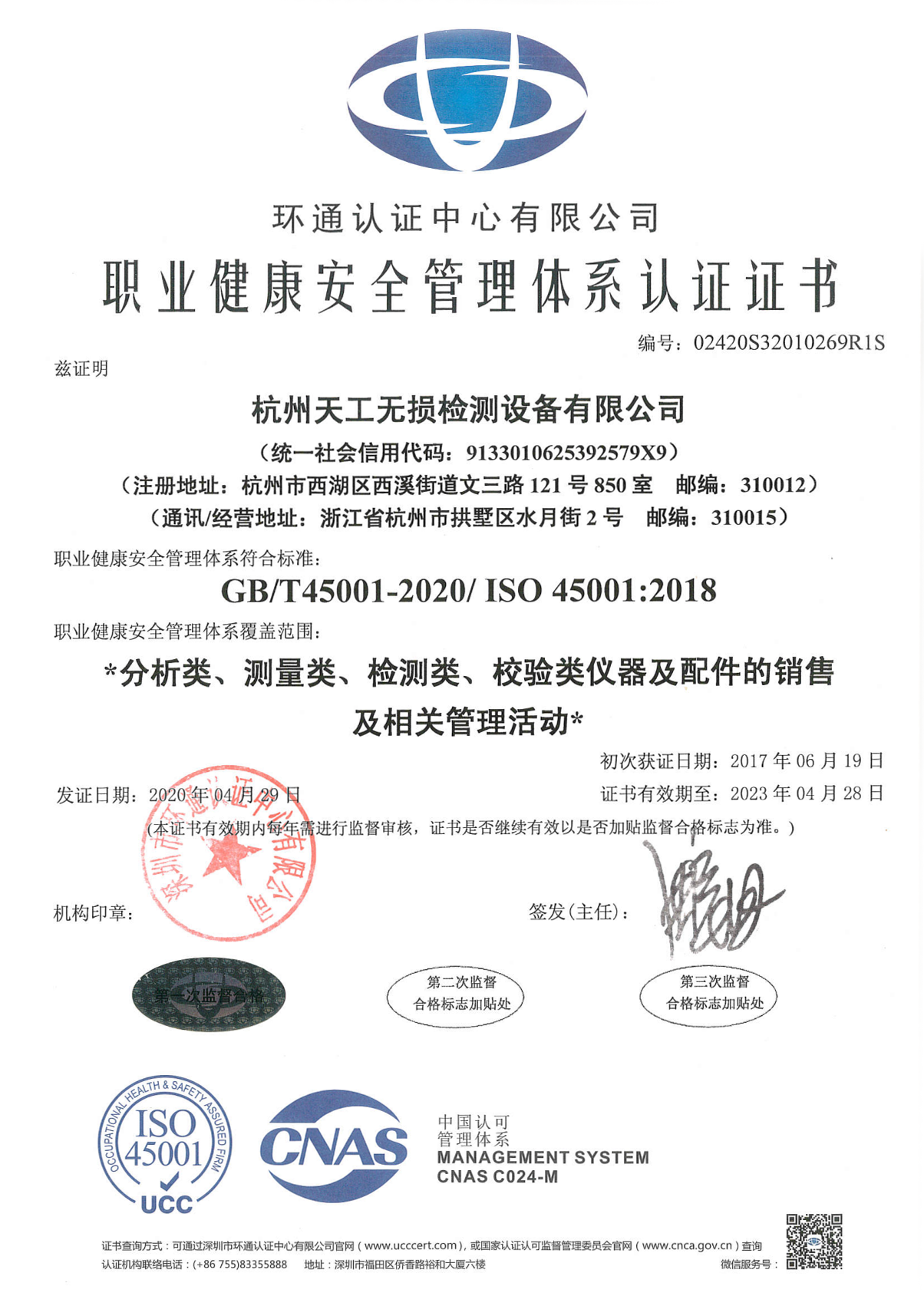 職業(yè)健康安全管理體系認證證書